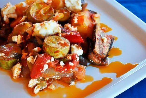 Υλικά: 3 μελιτζάνες φλάσκες 3 μεγάλα κολοκύθια 3 μεγάλα καρότα 2 γλυκες πιπεριές κοκκινες ή κίτρινες 2 μεγάλα κρεμμύδια 2 φλιτζάνια πολτοποιημένες ντομάτες 2 πατάτες 1 φλιτζάνι μαϊντανό ψιλοκομμένο ελαιόλαδο εγω βαζω μπολικο 1 κουταλάκι ζωμό λαχανικών σε σκόνη Αλάτι, πιπέρι 1 ½ φλιτζάνι φέτα θρυμματισμένη με το χέρι (προαιρετικά) 1-2 σκελίδες σκόρδο πολτοποιημένες (προαιρετικά, αν σας αρέσει) Αρωματικά όπως δεντρολίβανο, θυμάρι, βασιλικό ή φρέσκια ρίγανη (Προαιρετικά αν επιμένετε. Εγώ δεν βάζω, γιατί με αποσπούν απ’ τη γεύση των λαχανικών και άρα αντί να προσθέτουν, αφαιρούν νοστιμιά) 1 κ.γ. ζάχαρη