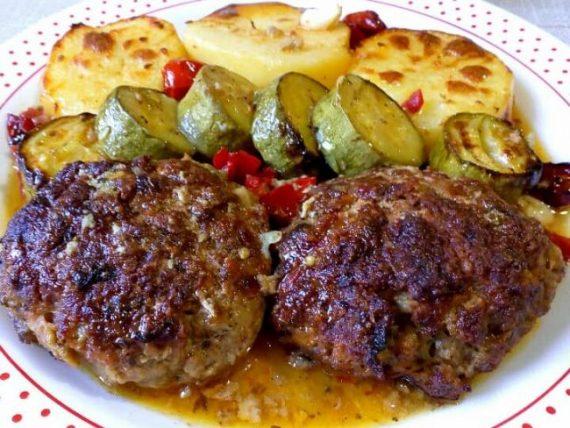 Μεσημεριανό: Μπιφτέκια με πατάτες και ντοματίνια