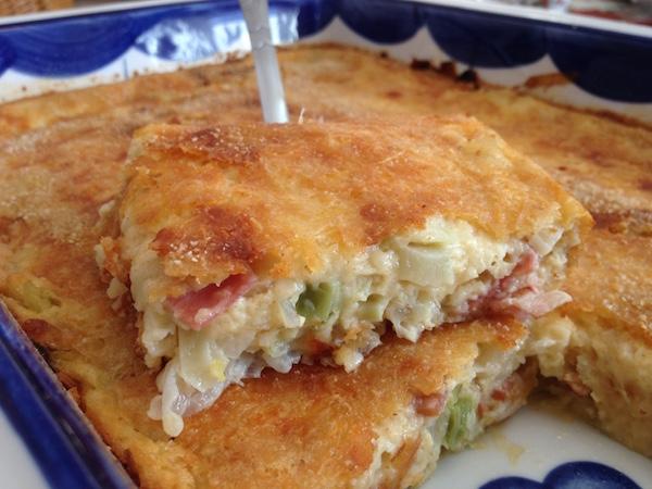 Πανεύκολη πίτα με πράσο μπέικον και τυρί σαν σουφλέ