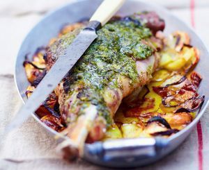 Κυριακή- Μπούτι αρνιού με μυρωδικά, πατάτες και κρεμμύδια συνταγή εδώ