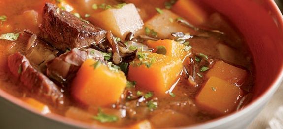 Βράζουμε το μοσχάρι για μια ώρα και το σουρώνουμε κρατώντας το νερό. Ρίχνουμε λάδι σε μια κατσαρόλα και τσιγαρίζουμε το μοσχάρι και από τις 2 μεριές, ρίχνουμε το κρεμμύδι να μαλακώσει, μετά τις πατάτες και τα καρότα και τέλος τη σάλτσα. Δεν ανακατεύουμε με δυνατές κινήσεις για να μην μας λιώσει το μοσχάρι. Ρίχνουμε το ζωμό από το μοσχάρι, αλάτι, ρίγανη,πιπέρι και τα δαφνόφυλλα. Σιγοβράζουμε μέχρι να χυλώσει το ζουμάκι