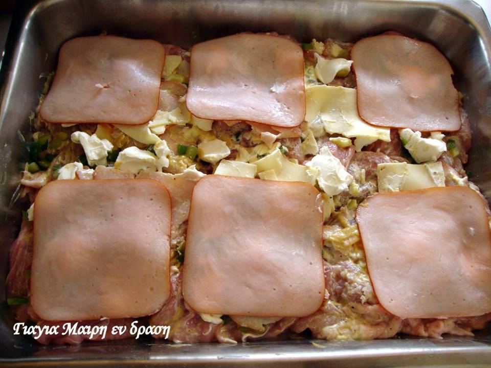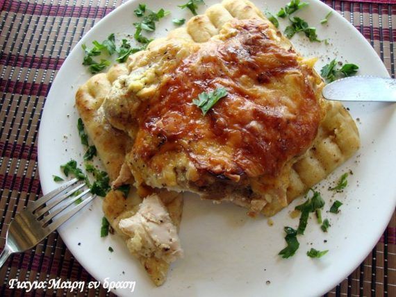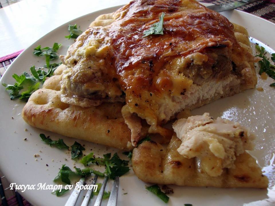 Φιλέτο μπούτια κοτόπουλο Υλικά 6 μπούτια κοτόπουλο 1 συσκευασία 200 γραμ τυρί Φιλαδέλφεια 1 πιπεριά κομμένη σε μικρούς κύβους 6 φέτες τυρί γκούντα 6 φέτες καπνιστή γαλοπούλα Αν θέλετε και μια χούφτα τριμμένο κίτρινο τυρί μουστάρδα αλατοπίπερο 6 πίτες για σουβλάκια Εκτέλεση Αγοράζουμε 6 μπούτια ζητάμε από τον χασάπη να μας τα κάνει φιλέτα ή το κάνουμε και εμείς είναι εύκολο αν το χαράξουμε από την μέσα πλευρά και με ένα κοφτερό μαχαίρι το ξεκολλήσουμε. Πλένουμε καλά και αφήνουμε να στραγγίσουν Τα στρώνουμε στο ταψί με την πέτσα προς τα κάτω και αλατοπιπερώνουμε καλά. Με ένα πινέλο περνάμε σε όλο το μέσα μέρος του φιλέτου με μουστάρδα. Ρίχνουμε τις πιπεριές και το Φιλαδέλφεια σε μικρά κομματάκια να πάει παντού. Από πάνω βάζουμε την γαλοπούλα το γκούντα και τελειώνουμε με το τριμμένο τυρί. Το σκεπάζουμε με λαδόκολλα και το βάζουμε σε ένα ράφι πριν το τέλος στον φούρνο μας. Ψήνουμε στους 170-180 πάνω κάτω μέχρι να φύγουν όλα τα υγρά που έχουν βγει στο ταψί μας. Κάνει περίπου μια ώρα και κάτι. Στο τέλος βγάζουμε την λαδόκολλα που απλά ακουμπήσαμε στο ταψί να μην μας καούν τα τυριά. Με ένα πινέλο Λαδώνετε τις πίτες και τις βάζετε στο τηγάνι να ψηθούν και από τις δυο πλευρές και πάνω στις πίτες σερβίρετε το φιλέτο σας. Την συνταγή αυτή την έκανα και με στήθος φιλέτο αλλά είναι αρκετά στεγνό. Το μπουτάκι θα σας ενθουσιάσει η τέλεια γεύση του