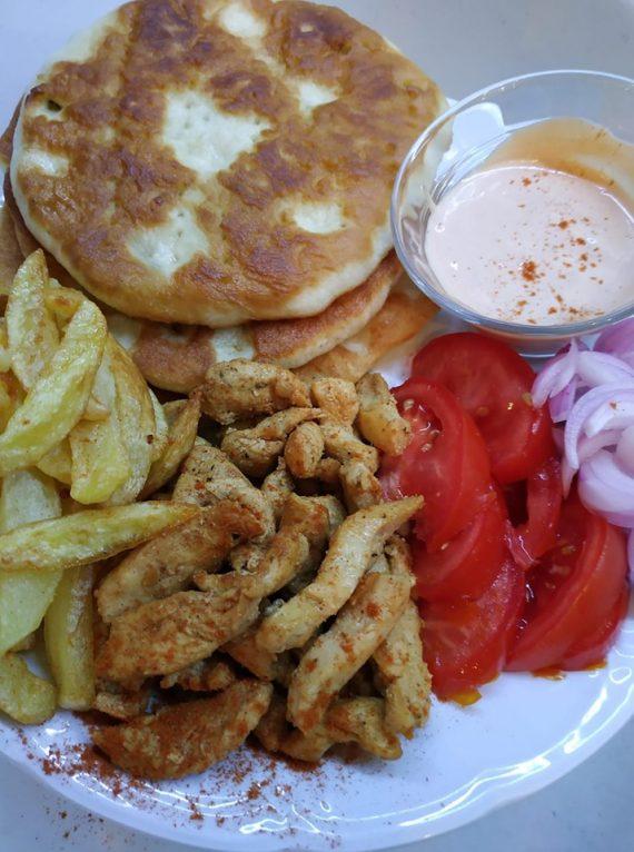 Εκτέλεση Βάζουμε το αλεύρι και τη μαγιά σε ένα μπολ Στα χλιαρά υγρά βάζουμε τα υπόλοιπα υλικά και τα ρίχνουμε στη λεκάνη με το αλεύρι. Ζυμώνουμε και αφήνουμε να φουσκώσει μετά την πατάμε να ξεφουσκώσει και χωρίζουμε σε μπαλίτσες εμένα μου βγήκαν 9 τεμ Τα βάζουμε σε αλευρωμένη λαδόκολλα τα σκεπάζουμε και τα αφήνουμε να φουσκώσουν Τα πατάμε και τους δίνουμε το σχήμα πίτας τα τρυπάμε με το πιρούνι και τα τηγανίζουμε σε λίγο σπορέλαιο και από τις δύο πλευρές Η σως είναι 1 κ κέτσαπ 1 κ μαγιονέζα μισή κ μουστάρδα.