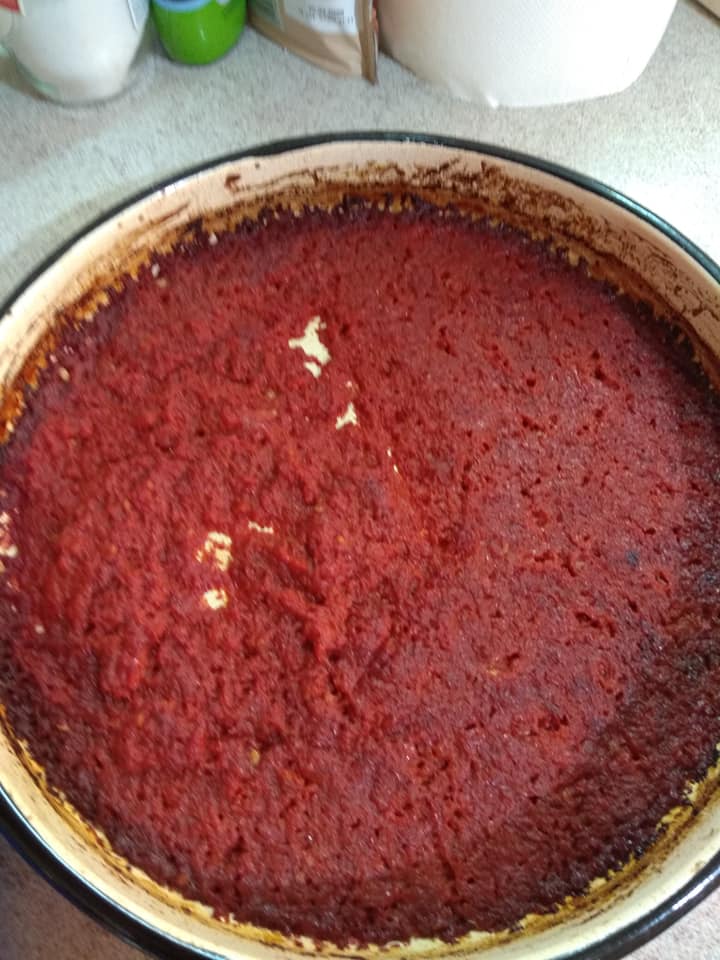 Εκτέλεση Έψησα στο φούρνο τις πιπεριές μέχρι να πάρουν χρώμα ,τις ξεφλούδισα,, τις έλιωσα στο μπλέντερ,έβαλα την σάλτσα στο ταψί,έβαλα αλάτι,πιπέρι,λάδι και το έψησα αλλά 15 λεπτά,έβρεξα την παγοθηκη και την γέμισα με την σάλτσα.