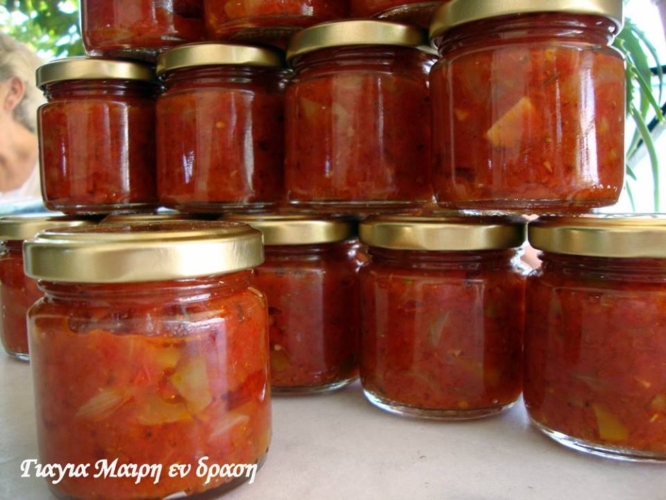Υλικά ώριμες ντομάτες κρεμμύδια σκόρδο δάφνη αλατι πιπέρι λίγη ζάχαρη ρίγανη πιπεριές ελαιόλαδο Εκτέλεση Χοντροκόβουμε τα κρεμμύδια και το σοτάρουμε. Όταν έχουν μελώσει ρίχνουμε το σκορδάκι και αμέσως μετά την ντομάτα και τα υπόλοιπα υλικά!!! Βράζουμε την σαλτσούλα μας μέχρι να δέσει. Εχουμε αποστειρωμένα βαζάκια μικρά να χωράνε μια δόση είναι καλύτερα.