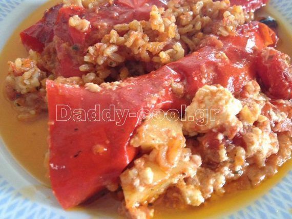 Γεμιστα με πιπεριες φλωρινης ντοματινια και φετα
