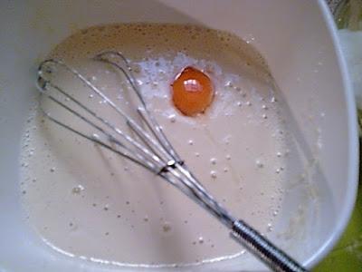Χτυπάμε το ασπράδι σε μαρέγκα με τον αυγοδάρτη και ξαναανακατεύουμε –φανταστικό κουρκούτι τραγανό ,χρησιμοποιήστετο για τα πάντα —