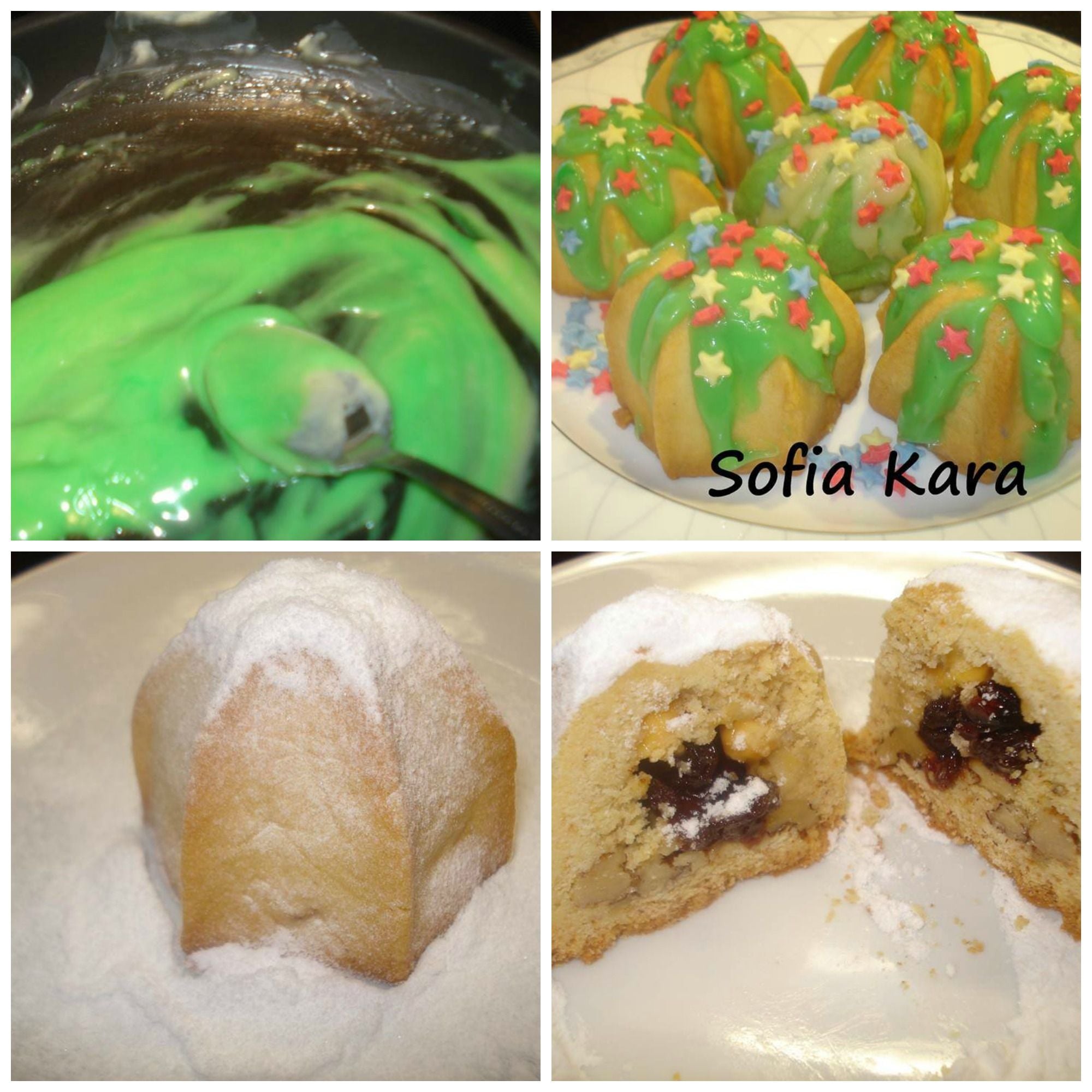 Για το στολισμα ελιωσα την ασπρη σοκολατα με κρεμα γαλακτος ! Στα πρασινα εβαλα ασπρη