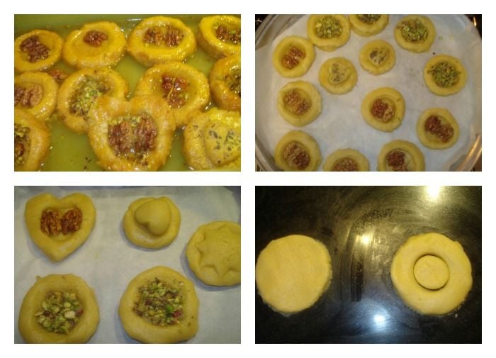 Σε μια λεκανη ριχνουμε το αυγο ,το βουτυρο,το γιαουρτι το μηλοξυδο και το σπορελαιο και το χτυπαμε με το μιξερ για να αφρατεψει! Ριχνουμε σιγα σιγα το αλευρι το μπεικιν και τη βανιλια και αρχιζουμε να ζυμωνουμε μεχρι να γινη μια ευπλαστη ζυμη ! Χωριζουμε τη ζυμη σε δυο ισα μερη! Αλευρωνουμε λιγο τον παγκο μας για να δουλεψουμε τη ζυμη μας ! Ανοιγουμε τη ζυμη με τα χερια μας και με κουπ πατ δημιουργουμε κυκλακια ! Τοποθετουμε το ενα κυκλακι στο ταψι με τη λαδοκολλα !Κοβουμε αλλο κυκλακι με πιο μικρο κουπ πατ και το τοποθετουμε επανω στο αλλο ,ωστε να δημιουργηθει ενα μικρο κενο! Βαζουμε στο κενο καρυδια και φυστικι αιγινης ,αλειφουμε με αυγο και ψηνουμε στους 180 β για 50 λ περιπου αναλογα το φουρνο!Μεχρι να ροδισουν! Ετοιμαζουμε συγχρονως και το σιροπι μας! Αφου κρυωσουν καλα ριχνουμε με προσοχη το σιροπι μας και τα αφηνουμε μεχρι να το ρουφηξουν! Ειναι πολυ νοστιμα και λιωνουν στο στομα!