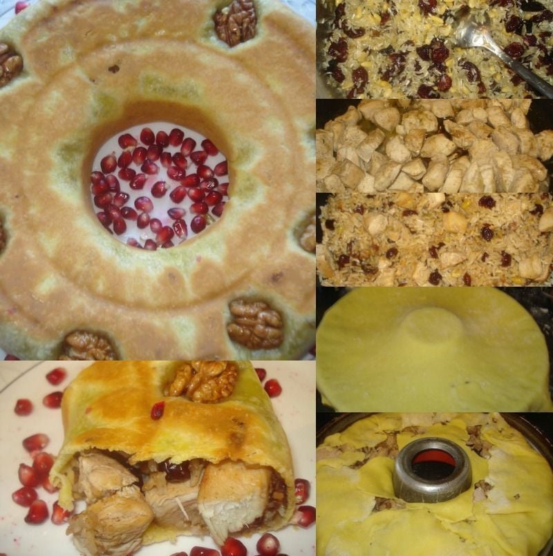 Αφου κρυώσει καλα το μειγμα μου ,το προσθετω στη φορμα με το φυλλο και με μεγαλη προσοχη το κλεινω με τα χερια μου! Ψηνω στους 180 β μεχρι να γινει ροδισει το φυλλο!