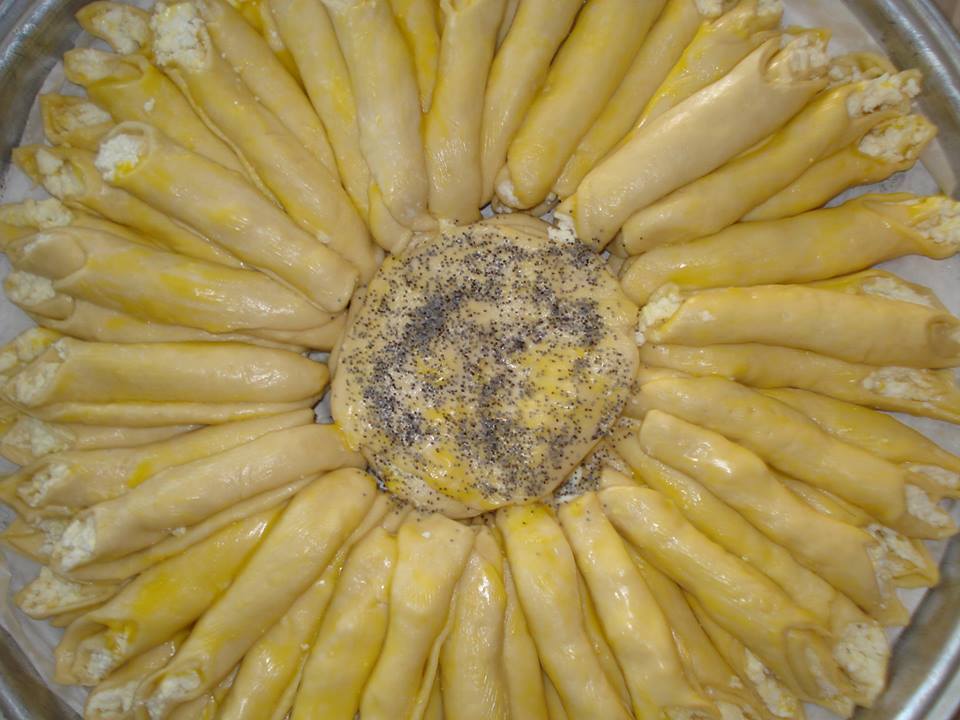 Υλικα: μισο λιτρο γαλα 1 κουταλια της σουπας ζαχαρη 1 φακελακι μαγιά 1 κουταλιά της σούπας αλάτι 2 αυγά και 1 ασπράδι 3 κουταλιές της σούπας λάδι 1 κιλο αλευρι γοχ Για τη γέμιση 200 γρ φέτα 100 γρ γλυκό τυρί τριμμένο (όποιο σας αρέσει) 100 γρ βουτυρο λιωμενο Επικάλυψη 1 κρόκο αυγού 2 κουταλιές της σούπας λάδι 2 κουταλιές της σούπας γάλα