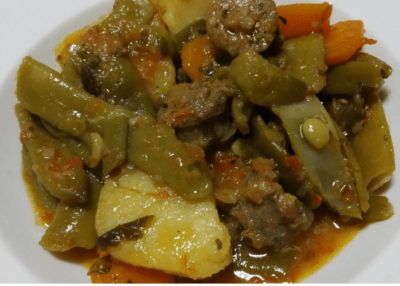 Φασολάκια λαδερά με λουκάνικο χωριάτικο