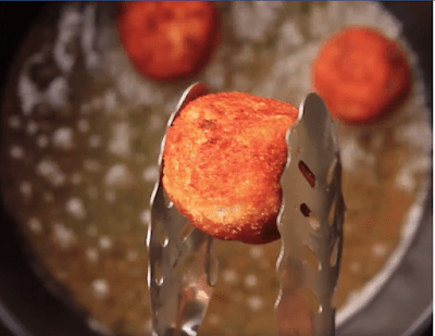 Κλείνουμε τον κεφτέ μας και το βουτάμε πρώτα στο αλεύρι μετά αυγό και τέλος φρυγανιά και τηγανίζουμε με μπόλικο λάδι -χρησιμοποίησα καλαμποκέλαιο .