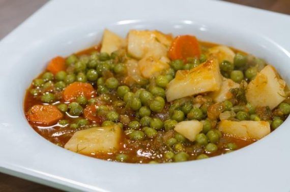 - Σε κατσαρόλα αφού κάψει προσθέτουμε λάδι και σοτάρουμε ελαφρά το κρεμμύδι χωρίς να πάρει χρώμα, προσθέτουμε τα καρότα, τις πατάτες και τέλος τον αρακά.