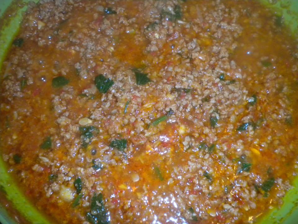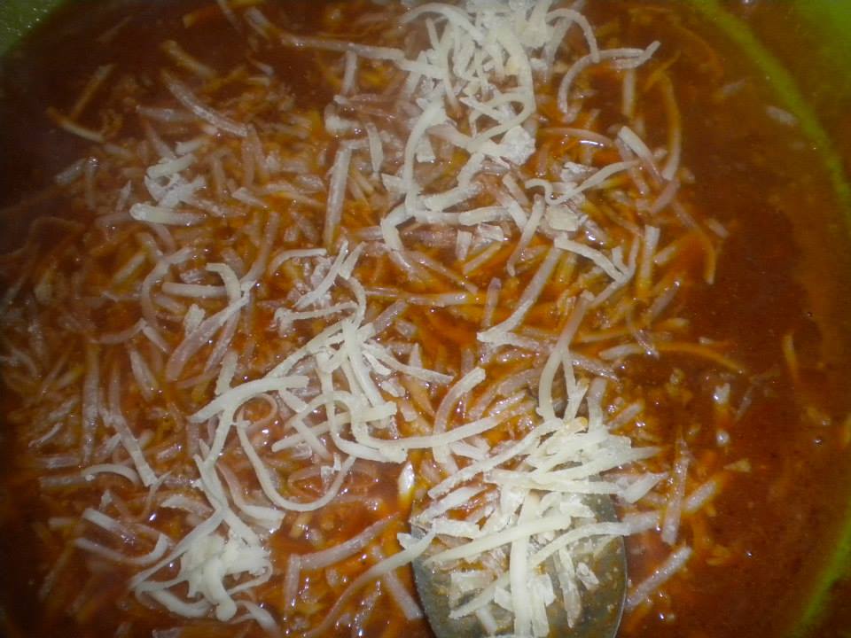 300 γραμμάρια. κιμάς μοσχαρίσιος, 2 κρεμμύδια ξερά ψιλοκομμένα , 2 κρεμμυδάκια φρέσκα μόνο στ άσπρο μέρος Μαϊντανό ψιλοκομμένο 1 κούπα από την εσωτερική ψίχα του κολοκυθιού αλεσμένη στο multi ή ψιλοκομμένη αλάτι πιπέρι κρόκο Κοζάνης 3-4 κλωναράκια εξαιρετικό ελαιόλαδο Μεσσηνίας 2 -3 μεγαλούτσικες πατάτες κομμένες σε χοντρές ροδέλες 1 κουταλιά πάστα ντομάτας 2 ντομάτες χοντροαλεσμένες ή κονκασέ, 4 κουταλιές σπιτικό τραχανά λίγη ζάχαρη μια πιπεριά τσίλι , 1 κλωναράκι φρέσκια ρίγανη για άρωμα, Τυρί γραβιέρα Τρίπολης μισό φλιτζάνι Ζωμό βοδινού