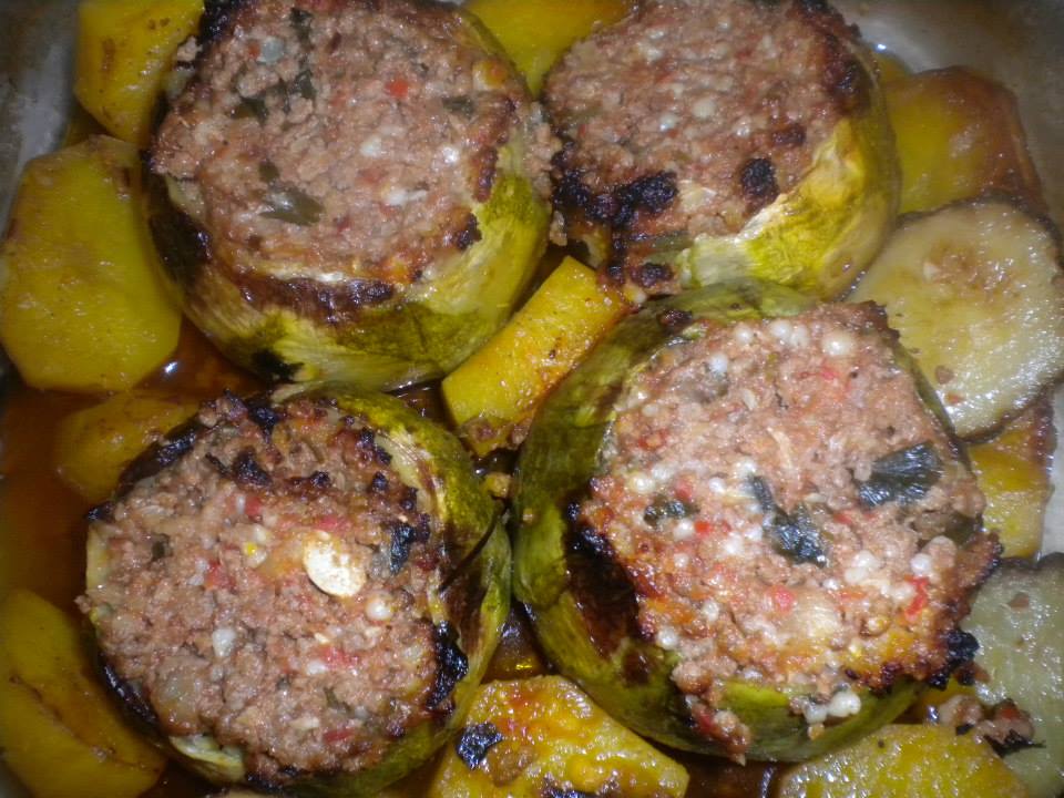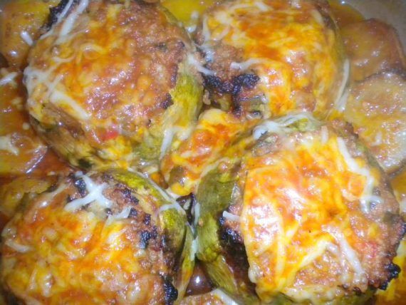 Κολοκυθάκια γεμιστά με κιμά και σάλτσα τυριου στο φούρνο
