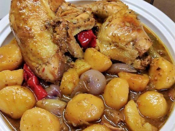 Θα το σιγοψήσουμε με μπύρα και από εκεί προέρχεται αυτό το κόκκινο χρώμα διότι δεν έχει σάλτσα ντομάτας. Είναι ένα τρυφερό κοτόπουλο με πεντανόστιμη γεύση που μπορούμε να το φάμε σκέτο ή να παραλείψουμε τις πατάτες και να τις τηγανίσουμε.