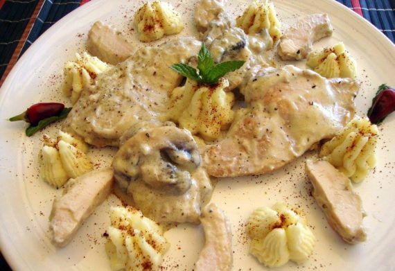Συνταγή για κρασάτο φιλέτο κοτόπουλο με μανιτάρια, 3 διαφορετικά είδη τυριών -ροκφόρ, παρμεζάνα, τυρί κρέμα- και κρεμώδη σάλτσα χωρίς κρέμα γάλακτος. Μία νόστιμη συνταγή και εύκολη για όλη την οικογένεια.