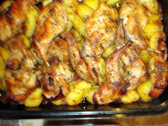 ΚΟΥΝΕΛΙ ΜΕ ΠΑΤΑΤΕΣ ΣΤΗ ΓΑΣΤΡΑ! 1 μεγαλο κουνελι 2 ποτηρια ασπρο κρασι 3 φυλλα δαφνης ελαιολαδο 1κιλο πατατες 4 ψιλοκομμενες σκελιδες σκορδο 1 κρεμμυδι ψιλοκομμεμο 1 ποτηρι ψιλοκομμενες ντοματες ριγανη μπαχαρι η κυμινο αλατι πιπερι ΕΚΤΕΛΕΣΗ Πλενω καλα το κουνελι, το κοβω σε μικρα κομματακια και το τοποθετω σε ενα βαθυ ταπερ! Ανακατευω το κρασι, τα φυλλα δαφνης, το αλάτι και το πιπέρι και μαριναρω με το μειγμα το κουνελι, το οποίο αφηνω ολο το βραδι στο ψυγειο! Ζεσταινω το ελαιολαδο σε ενα μεγαλο τηγανι και σοταρω το κουνελι! Στη συνεχεια το τοποθετω στη γαστρα! Προσθετω και το κρεμμυδι και τα σκορδα στο τηγανι και σοταρω, μεχρι να ροδισουν , ανακατευοντας συνεχως! Συμπληρωνω την ψιλοκομμενη ντοματα, τη ριγανη, το μπαχαρι και τη μαριναδα! Αλατοπιπερωνω και αφηνω τη σαλτσα να μαγειρευτει για 5 λεπτα 1 Καθαριζω ,κοβω και τοποθετω στη βαση της γαστρας τις πατατες! Περιχυνω το κουνέλι με τη σάλτσα και σκεπαζω τη γάστρα! Ψηνω στους 250 β μεχρι να ροδοκοκκινησει το φαγητο μας!