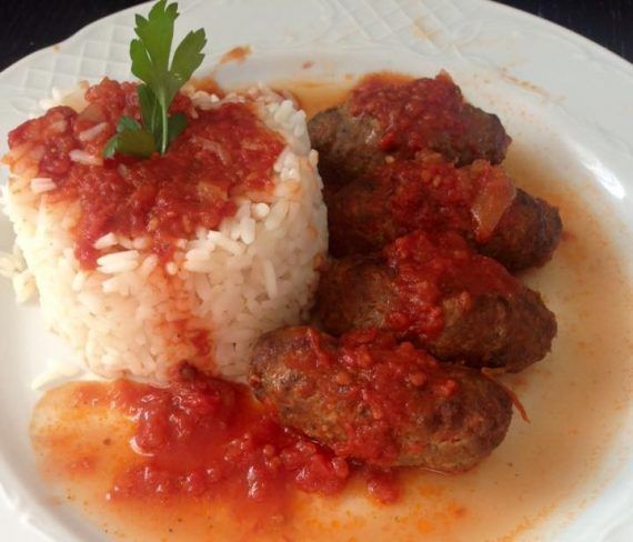 1. Αναμειγνύουμε όλα τα υλικά που έχουμε για τα σουτζουκάκια μας και τα ζυμώνουμε πολύ καλά. 2. Βάζουμε το μείγμα μας στο ψυγείο για 1-2 ώρες. 3. Ψήνουμε σε προθερμασμένο φούρνο στο grill τα σουτζουκάκια μας για περίπου 15 -20 λεπτά, αφού τα ψεκάσουμε πρώτα απο πάνω με λίγο λάδι.( τα γυρνάμε και απ τις δυο μεριές να ψηθούν) 4. Τσιγαρίζουμε σε ένα σκεύος το κρεμμύδι, το σκόρδο και ρίχνουμε την σάλτσα ντομάτας μαζί με όλα τα αρωματικά μας. 5. Τα αφήνουμε όλα να βράσουν και 5 λεπτά πριν είναι έτοιμη η σάλτσα μας, βγάζουμε την δάφνη και ρίχνουμε μέσα τα σουτζουκάκια μας να πάρουν και αυτά μια βράση με την σάλτσα μας. 6. Σερβίρουμε με ρυζάκι