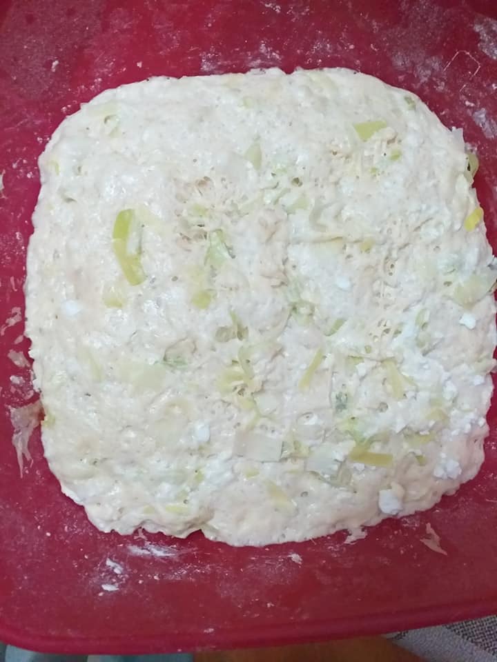 Χτυπάμε το αυγό, προσθέτουμε το γάλα, την μάγια, την ζάχαρη, το βούτυρο, το αλάτι, το πιπέρι. Ανακατεύουμε προσθέτουμε το αλεύρι σιγά σιγά, μέχρι να γίνει ένας αρκετά παχύρρευστος χυλός προσθέτουμε τα πράσα και το τυρί και αφήνουμε να φουσκώσει για 1 ώρα. Τηγανίζουμε ρίχνοντας κουταλιές του χυλού στο τηγάνι (μπόλικο λάδι).