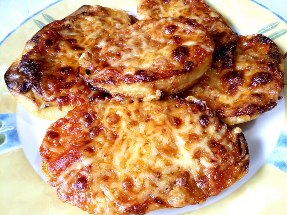 Μελιτζάνες και πατάτες ψημένες στο φούρνο σε λαδόκολλα σαν πιτσάκια…?