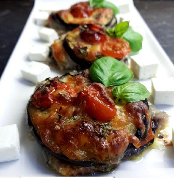Κόβουμε 2 μελιτζάνες σε πολυ λεπτές φετουλες Και της αλατωνουμε. Λαδονουμε το ταψάκι αραδιάζουμε μια στρώση με τις μελιτζάνες. Ρίχνουμε λίγο ελαιόλαδο από πανο,ρηγανι κ μουτσαρελα, και ψιλοκομμένα ντοματινια,κ ψιλοκομμένο μαϊντανό κ τυρί έτσι συνεχίζουμε μέχρι να τελειώσουμε μπορείτε να βάλετε όσες στρώσεις θέλετε βλέπετε φώτο !