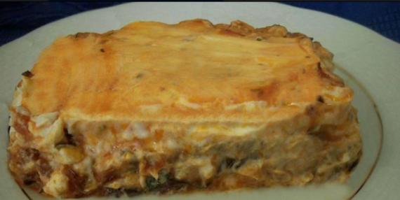 Έπειτα απλώνουμε το γιαούρτι πάνω από την σάλτσα και αν μας αρέσει, πασπαλίζουμε με γλυκιά πάπρικα !Επίσης αν προτιμάμε, μπορούμε να ψήσουμε το φαγητό με το γιαούρτι για 10-15 λεπτά και αφού το βγάλουμε από τον φούρνο και το αφήσουμε να κρυώσει καλά, να το κόψουμε σε κομμάτια και να σερβίρουμε.