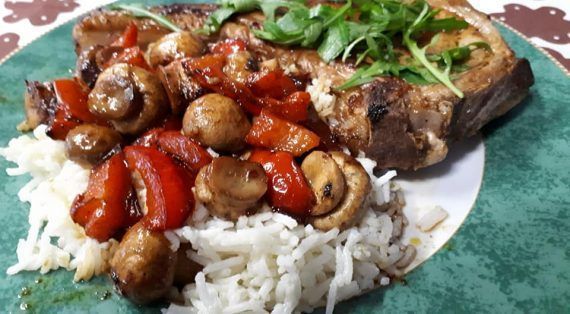 Μπριζόλες χοιρινες με μανιτάρια πιπεριές και μπαλσαμικο?