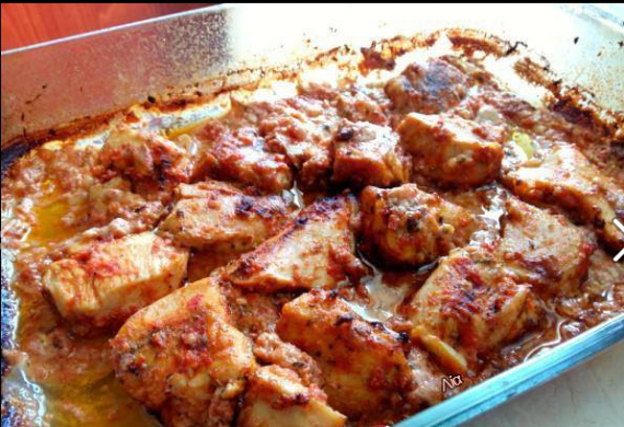 Βάζεις όλα τα υλικά σε ένα pyrex. Τα ανακατεύεις καλά, κλείνεις το pyrex και βάζεις το φαγητό στο φούρνο για περίπου 1 ώρα. Όταν πιεί όλο το νερό του είναι έτοιμο. Σερβιρεται με άσπρο ρύζι.