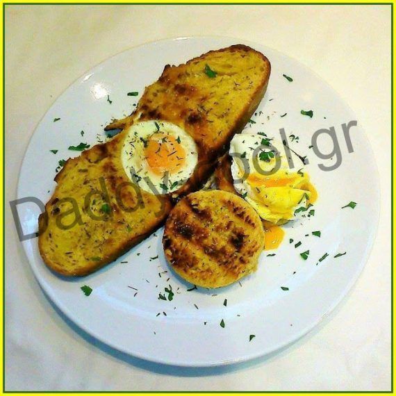 Παίρνουμε ένα τηγάνι και το αλείφουμε με λάδι. Βάζουμε τις φέτες και τις ψίχες και ψήνουμε σε μέτρια φωτια (όχι στο φούρνο)μέχρι να πάρουν χρώμα. Τις γυρνάμε από την άλλη πλευρά και στην φέτα με την τρύπα σπάμε ένα αυγό. Όταν η ξεχωριστή ψίχα ψηθεί την βαζουμε σε ένα πιάτο (τη θέλουμε για το ποσέ)