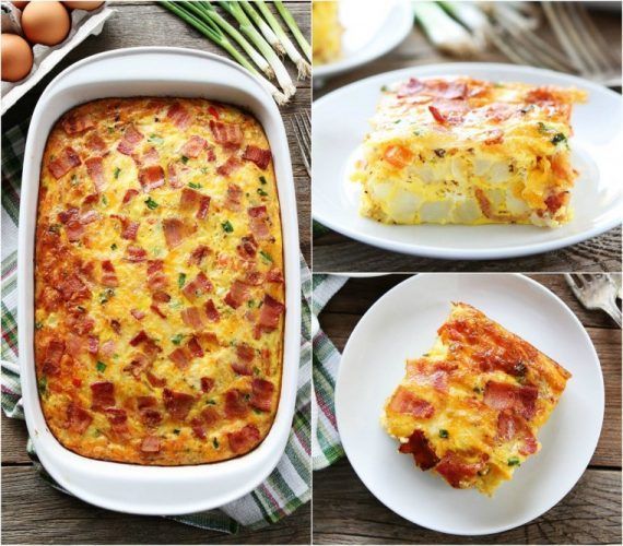 3 πατάτες καθαρισμένες και κομμένες σε κύβους 1 φλιτζανάκι του καφέ ελαιόλαδο 1 ματσάκι κρεμμυδάκια φρέσκα 1-2 κολοκυθάκια τριμμένα στον τρίφτη 1 ματσάκι μαϊντανό 150γρ. φέτα 8 αβγά 250 γρ. μπέικον ή ζαμπόν ψιλοκομμένο αλάτι πιπέρι