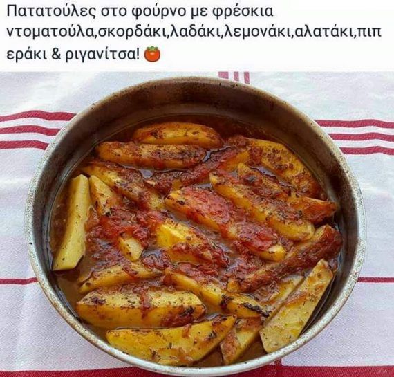 Πατάτες κοκκινιστές φούρνου ? Εύκολο και νόστιμο φαγάκι! Η διαδικασία είναι απλή… Καθαρίζουμε τις πατάτες και τις κόβουμε. Έπειτα προσθέτουμε τη τριμμένη ντομάτα,βάζουμε αλάτι,πιπέρι,ρίγανη,σκόρδο,λεμόνι,ελαιόλαδο και λίγο νεράκι. Σκεπάζουμε το ταψί με αλουμινόχαρτο και ψήνουμε στους 180 βαθμούς για 1 ώρα περίπου. Στη συνέχεια αφαιρούμε το αλουμινόχαρτο και συνεχίζουμε το ψήσιμο μέχρι να πάρουν ωραίο χρώμα οι πατατούλες μας… Συνοδεύεται πολύ ωραία με τυρί φέτα ή και με μια σαλάτα εποχής… Αν δεν έχουμε φρέσκια ντομάτα μπορούμε να βάλουμε χυμό συμπυκνωμένο η πελτέ ντομάτας.. Αν θέλετε μπορείτε να βάλετε και πιπεριά πράσινη,του ταιριάζει…