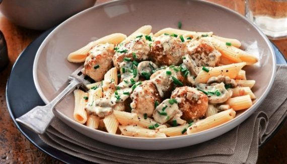 Μια πολύ εύκολη συνταγή για ένα πολύ νόστιμο πιάτο. Λουκάνικα κοτόπουλου σε κρεμώδη σάλτσα μουστάρδας με πένες. Ένα πεντανόστιμο γεύμα για όλη την οικογένεια. Υλικά συνταγής 500 γρ. λουκάνικα κοτόπουλου 500 γρ. ζυμαρικό πένες 1 ξερό κρεμμύδι ψιλοκομμένο 2 σκελίδες σκόρδο ψιλοκομμένο 250 γρ. λευκά φρέσκα μανιτάρια σε φέτες 1 κ.σ. αλεύρι 1 φλ. τσαγιού ζωμό κότας 300 ml κρέμα γάλακτος 2 κ.σ. μουστάρδα 1 μικρό κρεμμυδάκι πράσινο ή σχοινόπρασο σε φέτες ελαιόλαδο αλάτι πιπέρι Εκτέλεση συνταγής