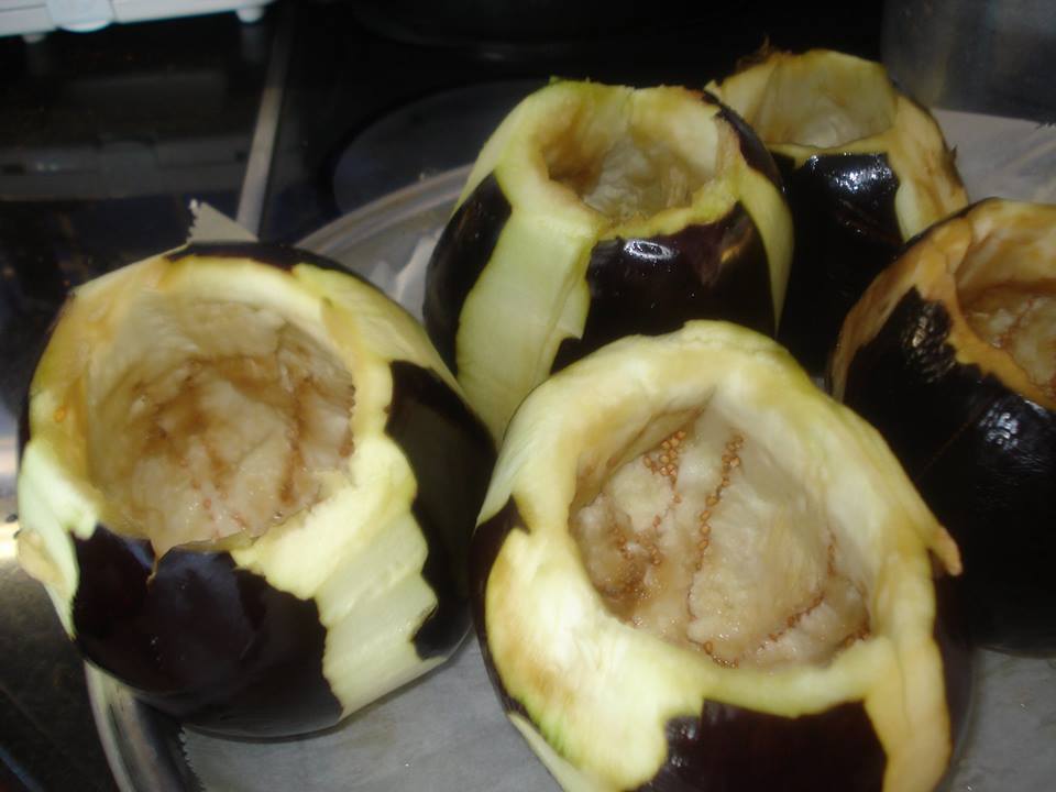 ΠΟΥΓΚΑΚΙΑ ΜΕΛΙΤΖΑΝΑΣ Υλικα. . 5 φλασκες μελιτζάνες μεγάλες. 1000 γρ κρέας μοσχαράκι κομμένο σε πολύ μικρά κυβάκια. 2 ξερά κρεμμύδια 1 πρασινη και 1 κόκκινη πιπεριά. 1 βάζο τριμμένη ντομάτα την οποια εκανα εγω 3 ντομάτες μέτριες και 3 πιπεριές για τη διακόσμηση. 1φλυτζ τριμμενο τυρί της αρεσκειας σας Μαϊντανό ρίγανη αλάτι πιπέρι ελαιόλαδο. .. Εκτέλεση. . Κόβω τις μελιτζάνες σε τεσσερα μερη για ομορφια και τις αδιαζω με προσοχη! Τις αλατιζω και τις βάζω σε μπόλικο νερό περίπου 1 ώρα .Τις πλένω και τις στραγγίζω! .Σε ταψί με αντικολητικο χαρτί τις απλώνω ,τις ραντίζω με λίγο λάδι και ψήνω στους 200 βαθμούς μέχρι να μαλακώσουν. Γέμιση.. . Σοτάρω το ψιλοκομμένο κρεμμύδι προσθέτω το κρέας τις πιπεριές τη ντομάτα τα αρωματικά και νεράκι και αφήνω να σιγοβράζει για περίπου 1 ώρα. .Βάζω τη γέμιση απο το κρεατάκι μας ! Τοποθετω μια φέτα ντομάτα μια ροδέλα πιπεριά και το πιάνω με οδοντογλυφίδα. Τα τοποθετω σ ενα ταψι και ρίχνω την σάλτσα που έχει περισσέψει. Ψήνω στους 180 βαθμούς μεχρι να ροδισουν ! Ριχνω και το τυρακι απο πανω και ετοιμο! .Σερβιρω και απολαμβανω! Ενα καλοκαιρινο φαγητο που θα σας ξετρελανει! Δοκιμαστε το!