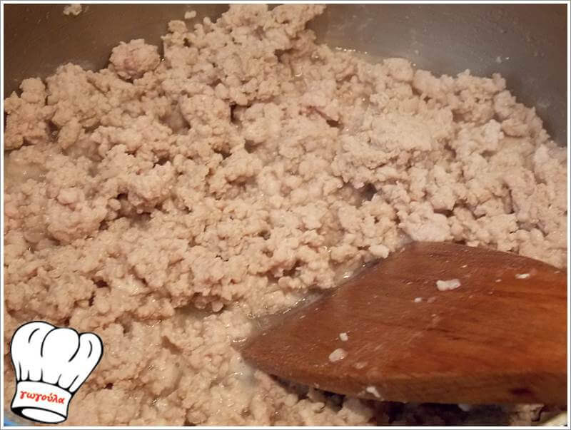 Οσο ψηνονται οι μελιτζανες βαζουμε τον κιμα σε κατσαρολιτσα το νερο
