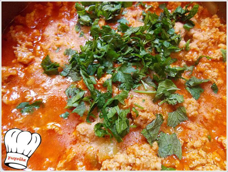 Προσθετουμε λιγο νερακι και σιγοβραζουμε μεχρι να γινει ο κιμας..εχοντας ομως και λιγα ζουμακια δεν τον θελουμε εντελως στεγνο. Τελος προσθετουμε αλατι,μαιντανο, δυοσμο ανακατευουμε και αφαιρουμε απο την φωτια.