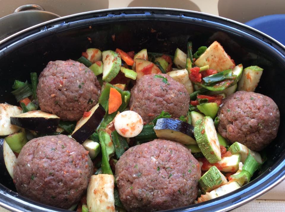 Ρολακια ( κιμας αυγο) με λαχανικα στη γαστρα.