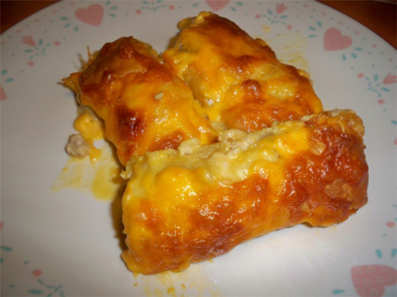 Υλικά ζύμη για 8 μεγάλα κρουασάν Pillsbury Για τη σάλτσα στο ταψί: 1 συσκευασία μανιταρόσουπα έτοιμη σε κουτί ή σκόνη 3/4 φλ. τσαγιού τυρί τσένταρ τριμμένο 2/3 φλ. τσαγιού κρέμα γάλακτος Για τη γέμιση: 120 γρ. μαλακό τυρί κρέμα τύπου Philadelphia ή Μασκαρπόνε 4 κ.σ. βούτυρο σε θερμοκρασία δωματίου 1 κ.γ.σκόνη σκόρδο ή 1 σκελίδα σκόρο ψιλοκομμένη 1 μικρό ξηρό κρεμμύδι ψιλοκομμένο 1 μεγάλο βρασμένο στήθος φιλέτου κοτόπουλου ψιλοκομμένο [400 γρ, περίπου] 3-5 κ.σ. κρέμα γάλακτος 3/4 φλ. τσαγιού τυρί τσένταρ τριμμένο αλάτι πιπέρι 1 1/2 τσαγιού τυρί τσένταρ τριμμένο για πασπάλισμα
