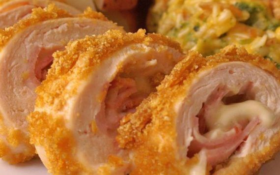 Ρολό κοτόπουλο πανέ Λαχταριστό ρολό γεμιστό με τυρί και ζαμπόν