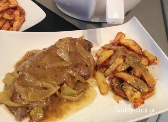 Σαγανάκι συκώτι με τηγανιτές πατάτες( οι πατάτες μου είναι τηγανισμένες μόνο με μια κουταλιά λάδι σε ειδική φριτέζα για να αποφύγω τα πολλά λάδια, εσείς κάντε το σαγανάκι σας με ότι θέλετε)