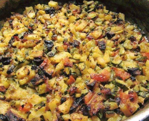Όλα τα λαχανικά μαζί κομμένα όμως σε κύβους. Παίζει ρόλο το κόψιμο..!!