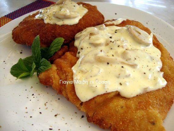 Σνίτσελ με μανιτάρια κρέμα γάλακτος & κονιάκ υλικά για τα σνίτσελ 1 1/2 κιλό σνίτσελ χοιρινά 3 κουταλιές μουστάρδα αλατι πιπέρι υλικά για το πανάρισμα σπορέλαιο για το τηγάνι 3 αυγα 1 κρέμα γάλακτος 2 κούπες τριμμένη φρυγανιά 2 κούπες αλεύρι αλατι πιπέρι