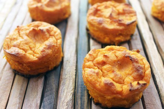Προθερμάνετε το φούρνο στους 180 βαθμούς. Βουτυρώνουμε ένα πυρέξ ή 6 μεσαία πυρίμαχα μπολ. Τοποθετείτε τα καρότα σε μια κατσαρόλα και τα καλύπτετε με νερό. Προσθέστε περίπου 1 κουταλάκι του γλυκού αλάτι στο νερό. Βράζετε για περίπου 10 λεπτά, ή μέχρι τα καρότα να είναι τρυφερά. Στραγγίζετε τα καρότα και τα κάνετε πουρέ σε έναν επεξεργαστή τροφίμων ή με ένα μπλέντερ.