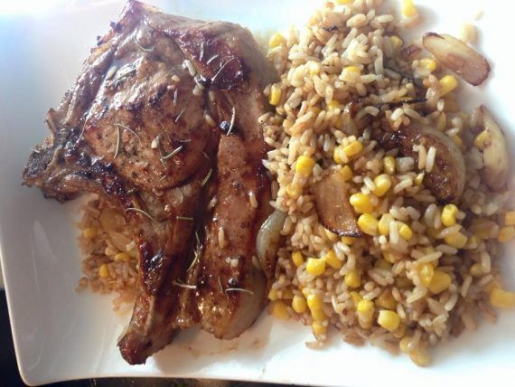 Σπαλομπριζόλες και ρυζάκι-καλαμπόκι στο τηγάνι με Jack Daniels BBQ glaze smokey sweet sause