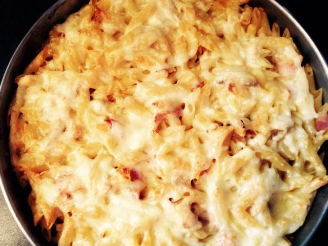 Βουτυρωνουμε ενα ταψι και ριχνουμε τα μακαρονια,τα τυρια,το μπεικον,τα μανιταρια,το μειγμα εβαπορε/αυγων ανακατευουμε ελαφρα και πασπαλιζουμε λιγο τυρι απο πανω.