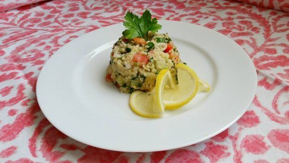 Τα πιο απλά είναι και τα καλύτερα! Tabbouleh (Ταμπουλέ) με πλιγούρι! Αν και έπρεπε να το αφήσω να τραβήξει ακόμα λίγο πριν βγάλω τις φωτογραφίες…βιάστηκα γιατί είχα αρκετές δουλειές να κάνω. Παρόλα αυτά βγήκε υπέροχο!!! Υλικά (για 4 άτομα): 1 κούπα πλιγούρι ψιλό 2 κούπες ζεστό νερό 1 ματσάκι μαϊντανό (εγώ είχα μισό μόνο) 1/2 ματσάκι δυόσμο 4-5 φρέσκα κρεμμυδάκια 1 μεγάλη τομάτα 1/2 αγγούρι 1 λεμόνι μεγάλο (το χυμό και λίγο ξύσμα) 2 κ.σ ελαιόλαδο Αλάτι,πιπέρι. Εκτέλεση: Μουλιάζουμε το πλιγούρι στο νερό για 30 λεπτά περίπου σε σκεπασμένο μπολ μέχρι να τραβήξει τα υγρά και να φουσκώσει. Στο μεταξύ αφαιρούμε τους σπόρους από την τομάτα και το αγγούρι και τα κόβουμε σε μικρά καρέ τα οποία βάζουμε σε ένα μπολ. Ψιλοκόβουμε τον μαϊντανό,το δυόσμο και τα φρέσκα κρεμμυδάκια και τα βάζουμε στο μπολ με τα καρέ τομάτας-αγγουριού. Όταν το πλιγούρι μας είναι έτοιμο το ανακατεύουμε με ένα πιρούνι να αφρατέψει και το προσθέτουμε στα υπόλοιπα υλικά. ρίχνουμε το ξύσμα,το ελαιόλαδο,το χυμό λεμονιού και αλατοπιπερώνουμε. Ανακατεύουμε καλά όλα τα υλικά μας,καλύπτουμε το μπολ με μεμβράνη τροφίμων και το βάζουμε στο ψυγείο έτσι ώστε το ταμπουλέ να κρυώσει καλά και να μαριναριστεί. Πριν σερβίρουμε ανακατεύουμε καλά ακόμα μια φορά και απολαμβάνουμε! *μπορούμε να μουλιάσουμε το πλιγούρι σε χυμό λεμονιού αντί για νερό και αν δεν μας αρέσει το πλιγούρι να βάλουμε κους κους. Καλή επιτυχία!