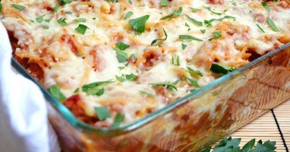 Μια συνταγή για ένα λαχταριστό, πεντανόστιμο φαγητό με ζυμαρικό, κιμά πασπαλισμένο με λιωμένα τυριά.