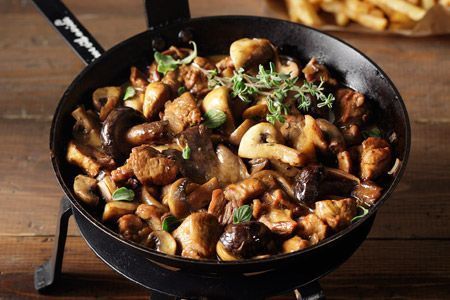 Τηγανιά με χοιρινό μαριναρισμένο σε ρετσίνα και μανιτάρια