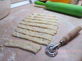Κόβουμε τη ζύμη σε κύκλους με ένα ποτήρι ή με κούπατ.
